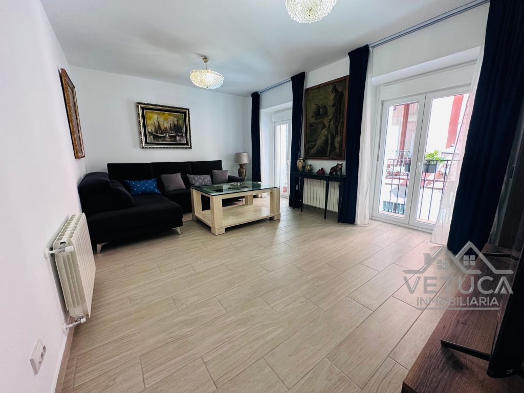 La vivienda consta de un salón con dos balcones a la calle, dormitorio principal con balcón exterior, vestidor y baño en su interior. El segundo dormitorio con dos ventanas interiores. Cocina totalmente equipada abierta al comedor con isla central y amplia despensa. Cuenta también con un segundo baño completo.