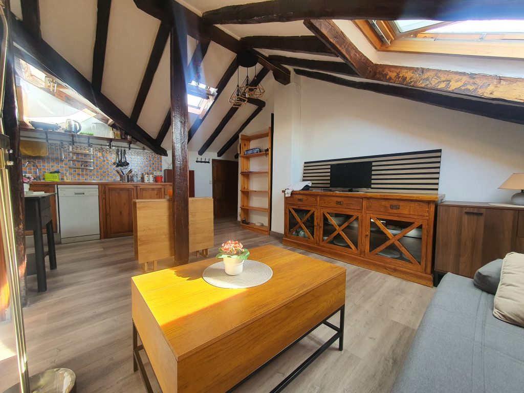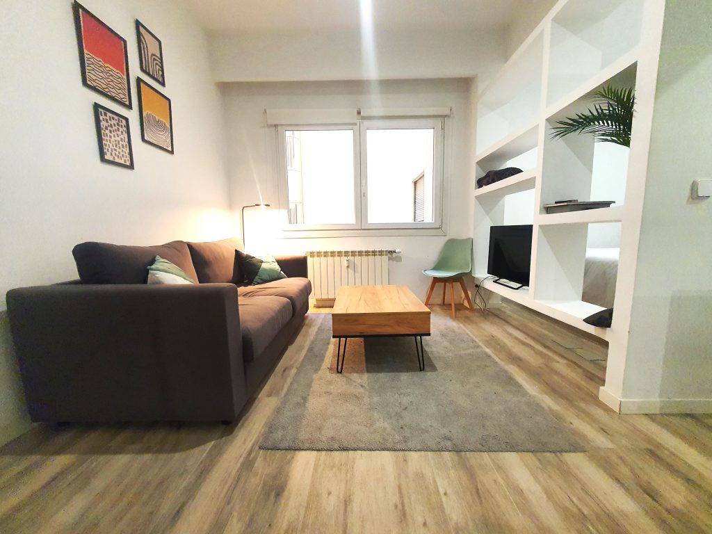 Apartamento tipo loft con aire acondicionado y calefacción central con con contador individual en finca moderna con portal señorial en la emblemática Plaza de España, situada en un punto estratégico, es una puerta de entrada al centro histórico y conectada con diversas ruta desde la Puerta del Sol hasta el Templo de Debod o Gran Vía.