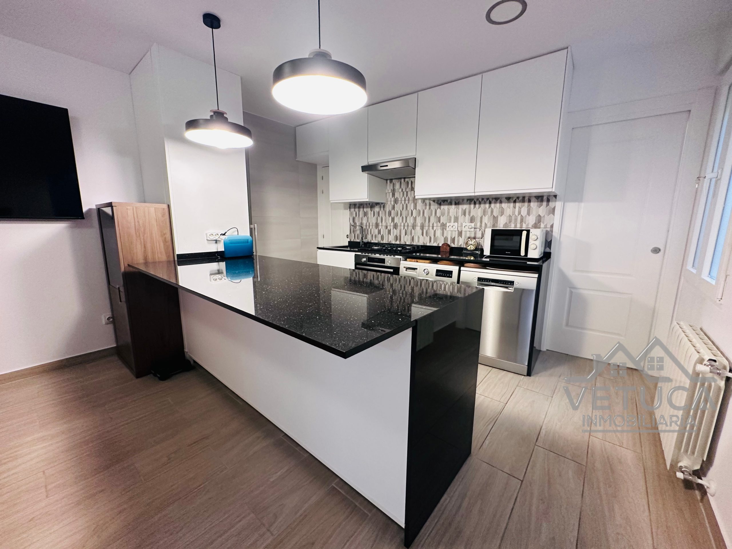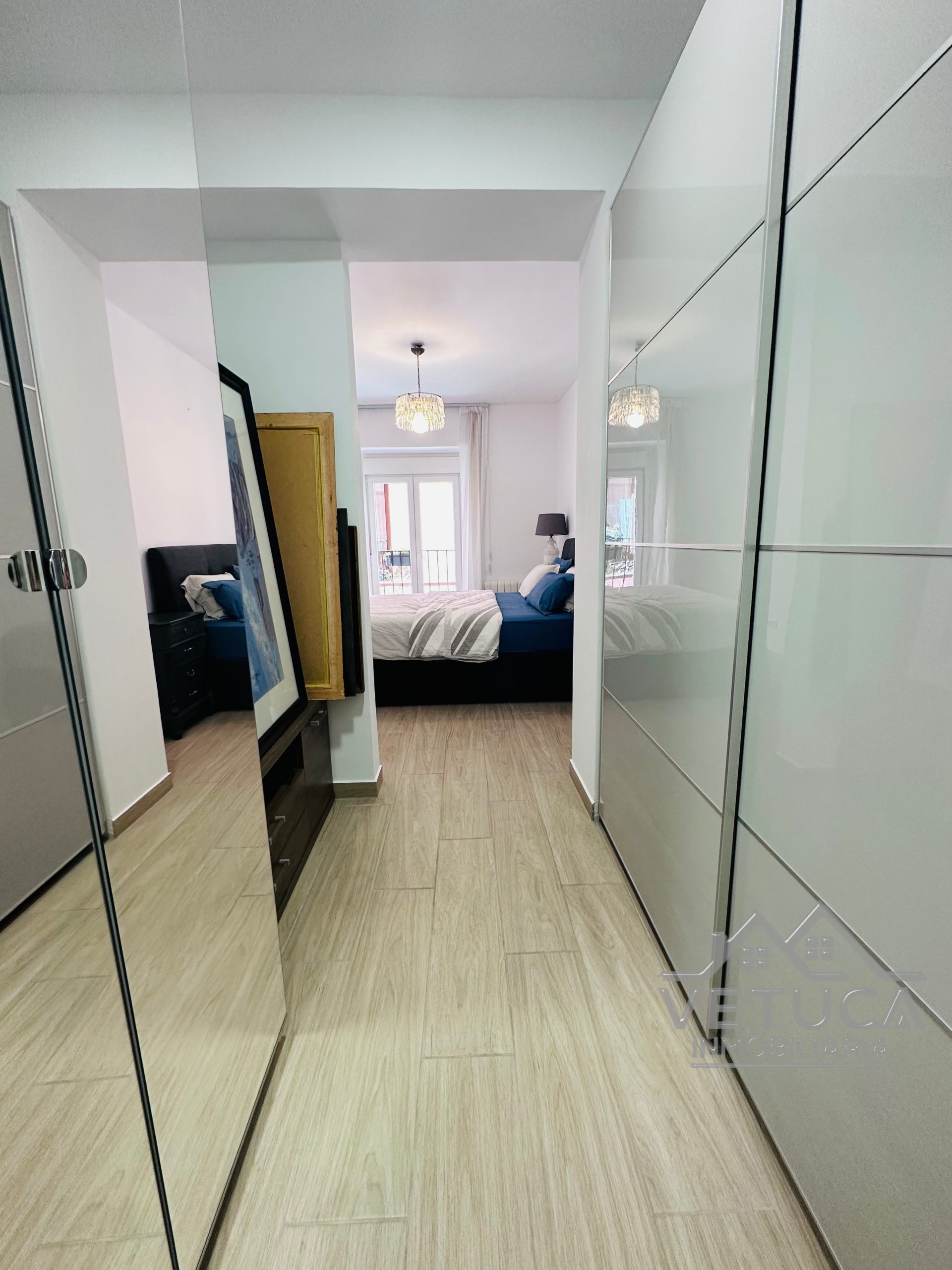 La vivienda consta de un salón con dos balcones a la calle, dormitorio principal con balcón exterior, vestidor y baño en su interior. El segundo dormitorio con dos ventanas interiores. Cocina totalmente equipada abierta al comedor con isla central y amplia despensa. Cuenta también con un segundo baño completo.