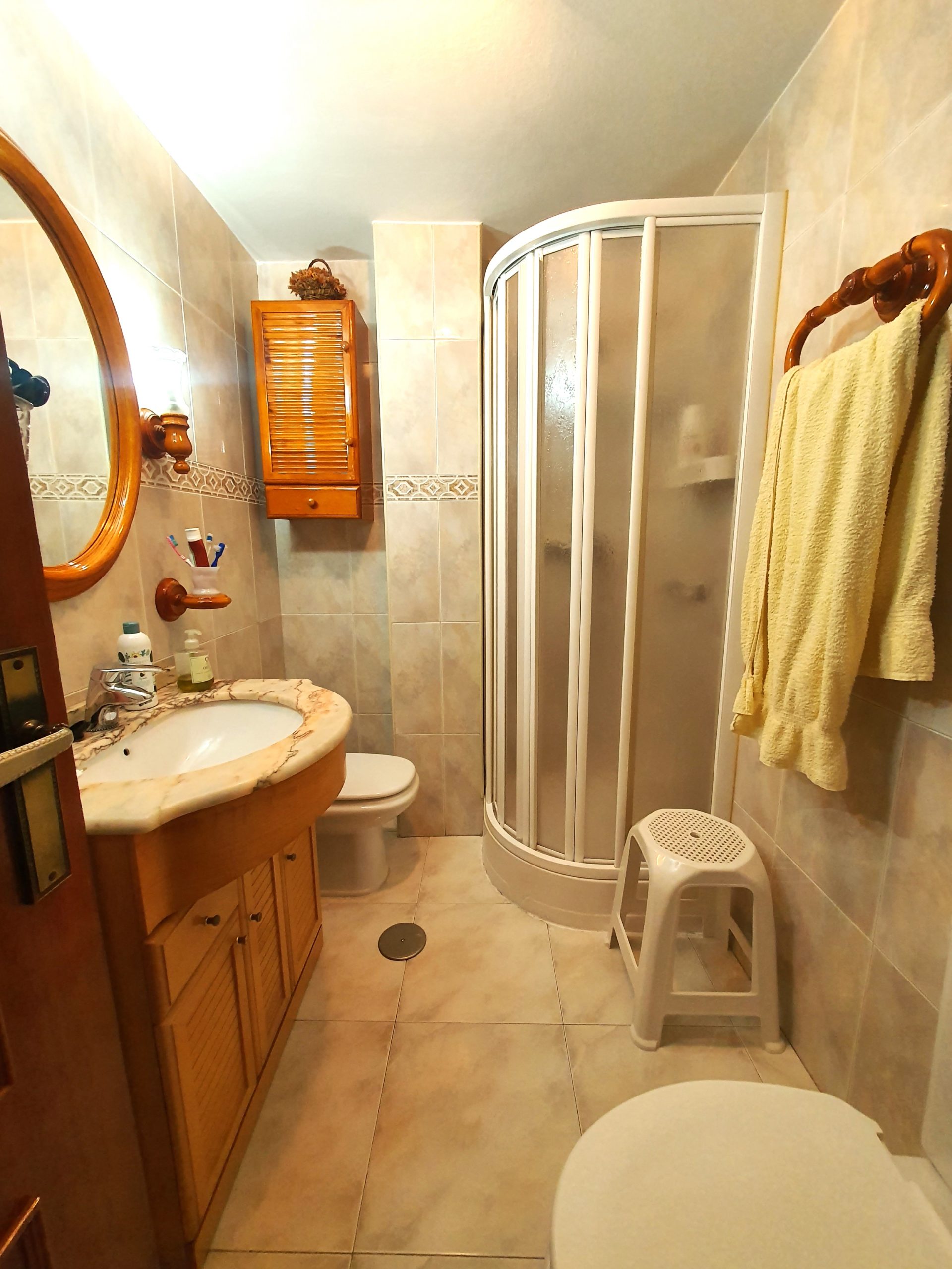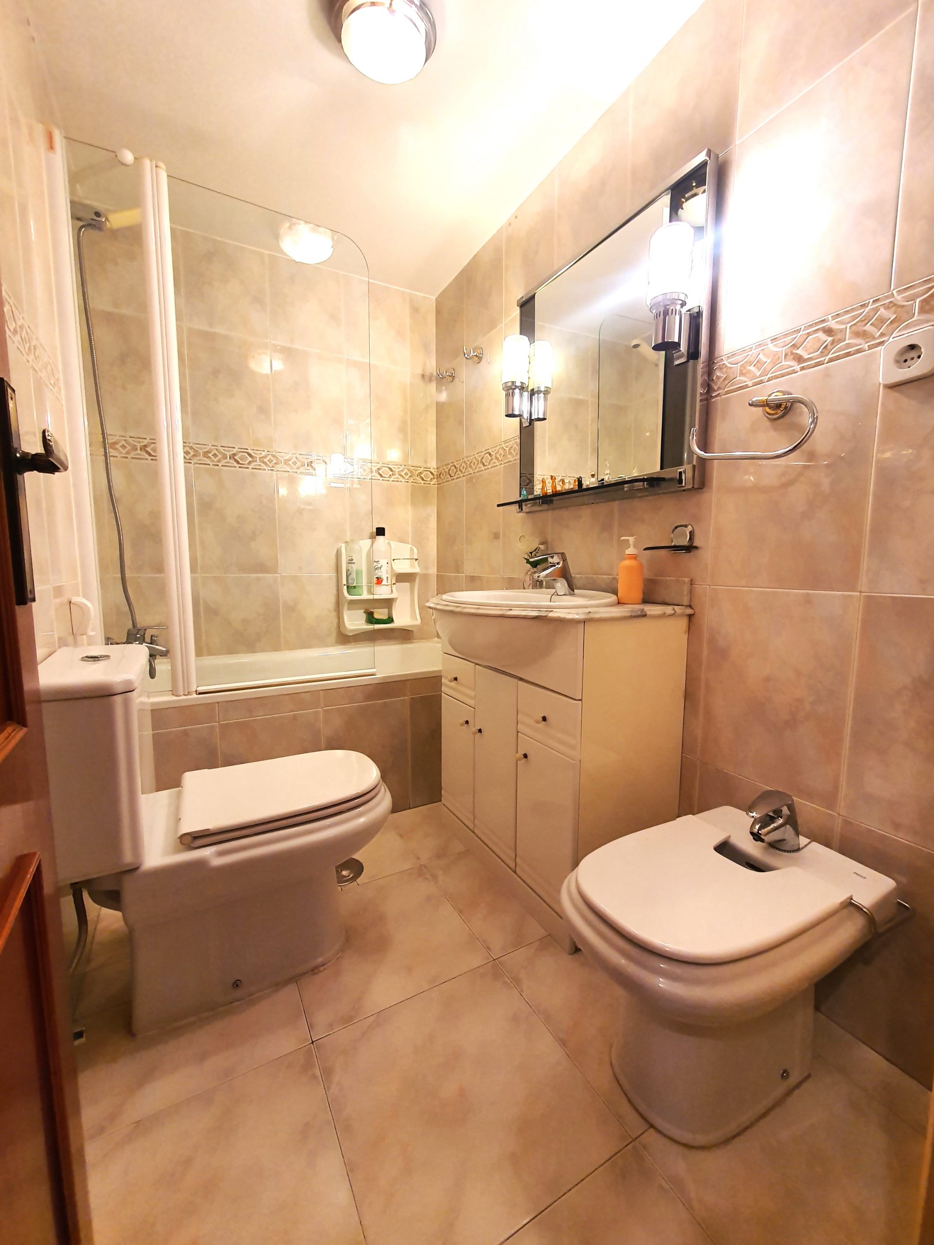 La vivienda se distribuye en un amplio salón-comedor que invita a relajarse y disfrutar, una cocina independiente con tendedero, y tres dormitorios equipados con armarios empotrados que ofrecen un gran espacio de almacenamiento. Además, cuenta con dos baños completos, aire acondicionado en el salón y en el dormitorio principal, así como calefacción y agua caliente central para tu comodidad.